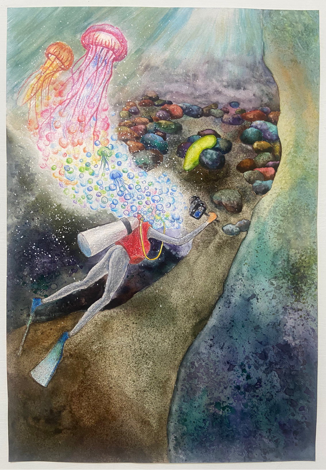 One day, I dove into the crystal-clear waters and discovered a mysterious jade stone — perfectly shaped like my homeland, Taiwan.