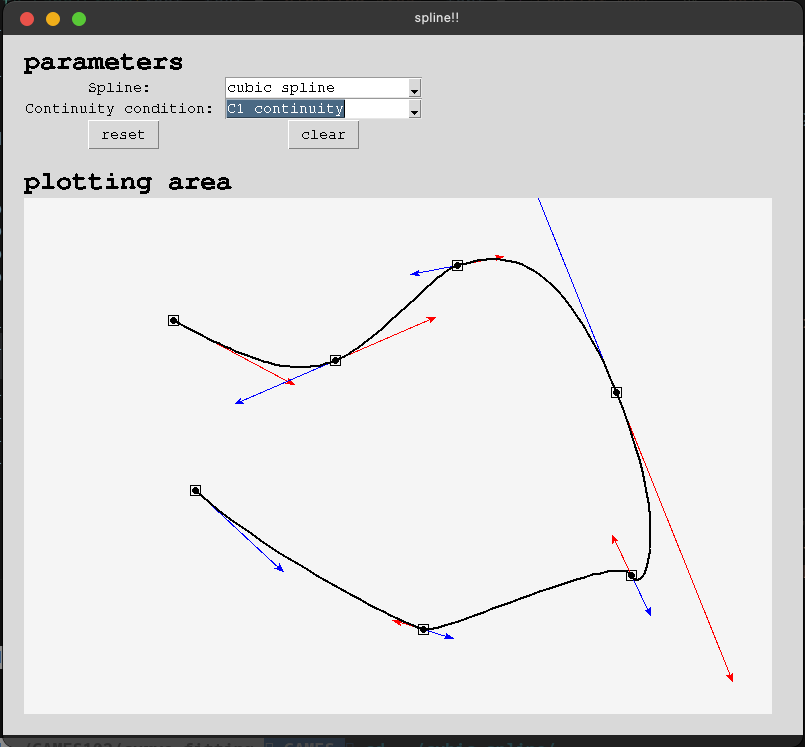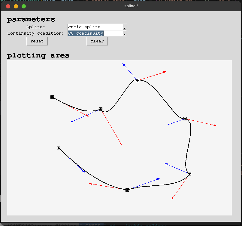 Solved cubic spline interpolation under various continuity constraints: