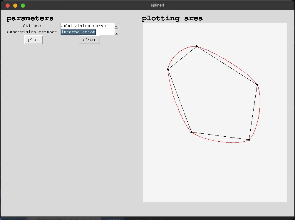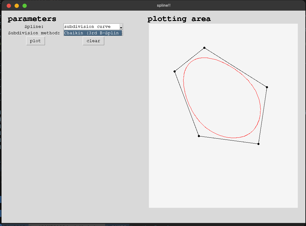 Implemented three curve subdivision methods: